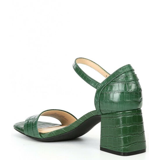 From Alex Marie, the Aidrea Croco Print Ankle Strap Block Heel Sandals feature: