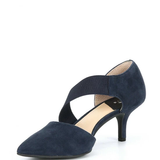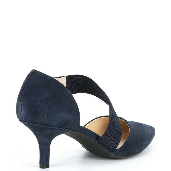 From Alex Marie, the Brandlin Suede Asymmetrical Strap Pumps feature: