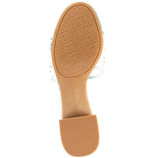 From Alex Marie, the Caralyn Clear Rhinestone Metallic Block Heel Sandals feature: