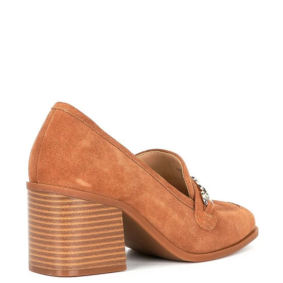 Wholesale πŸ₯° Alex Marie Farin Suede Chain Hardware Loafer Pumps Caramel πŸ˜€