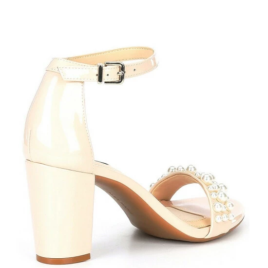 Coupon 😍 Alex Marie HalmarThree Patent Pearl Strap Block Heel 🩴 Sandals Powder Pink βŒ›