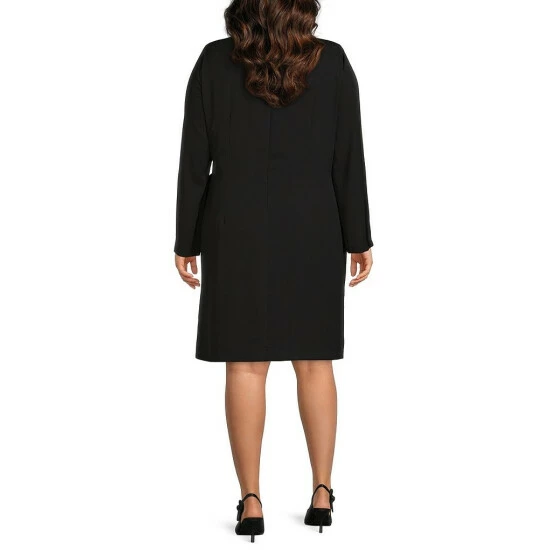 Budget ❀️ Alex Marie Plus Size Jolie Surplice V-Neck Long Sleeve Stretch Crepe Gathered Ring Waist Faux Wrap πŸ‘— Dress Black βŒ›