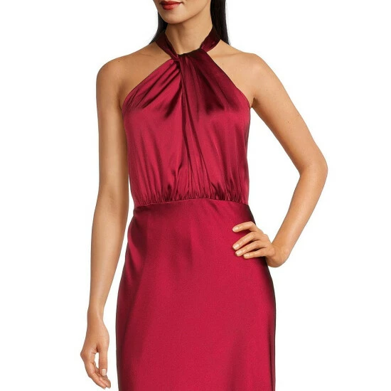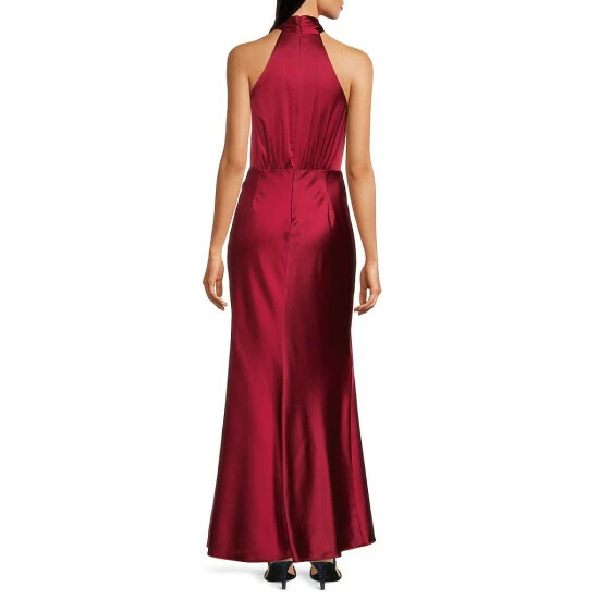Best deal ✨ Alex Marie Vivienne Stretch Satin Ruched Twist Halter Sheath Gown Scarlett ⌛