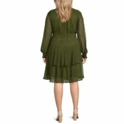 Cheap ๐ฅฐ Alex Marie Plus Size Rosalia Long Split Sleeve Mock Neck Tie Waist ๐ Dress Olive โจ