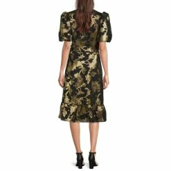 Discount ๐ฅ Alex Marie Renoir V-Neck Long Sleeve Tiered Ruffle Hem Midi ๐ Dress Black/gold ๐