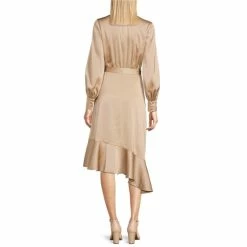 Cheapest ๐ Alex Marie Lilac Satin V-Neck Long Sleeve Wrap Ruffle ๐ Dress Champagne โญ