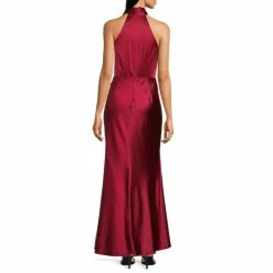 Best Sale 💯 Alex Marie Colette Sleeveless Keyhole Neck Tie Waist Ruffle Front Sheath Gown Burgundy ⌛