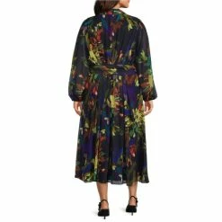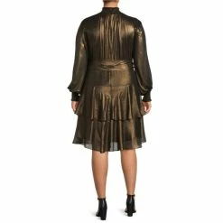 Best Sale โจ Alex Marie Plus Size Rosalia Foiled Chiffon Mock Neck ๐ Dress Black/gold โค๏ธ