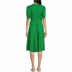Hot Sale 🎉 Alex Marie Ashlyn Short Puff Sleeve V-Neck Machine Washable Wrap Midi 👗 Dress Kiwi 🥰