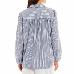 Top 10 ๐ฅ Alex Marie Logan Button Down Collar Long Sleeve Elastic Cuff Striped Blouse Blue/white ๐